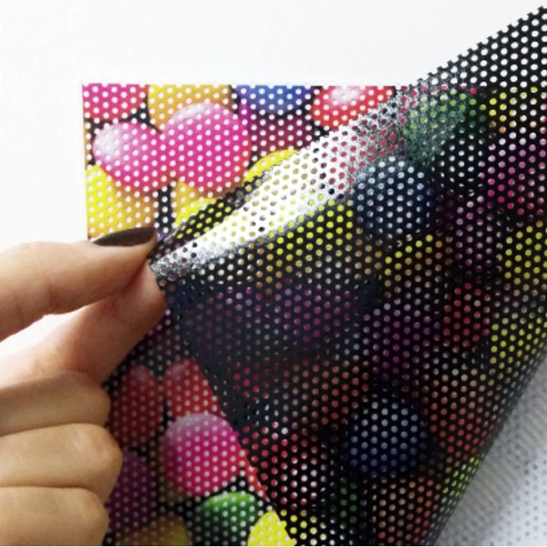 O adesivo perfurado é uma película adesiva de vinil, ideal para decorar janelas, portas e divisórias de vidro em lojas, salas, academias e escritórios. Quem está dentro do local, consegue ver tudo o que acontece fora do ambiente. No exterior, a visibilidade do seu espaço é reduzida até 50%. Ideal para quem precisa aumentar a privacidade de clientes e colaboradores em um ambiente.